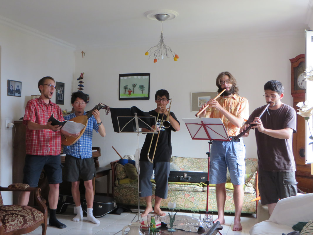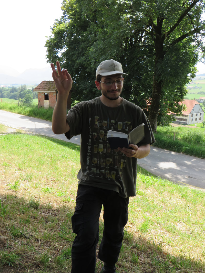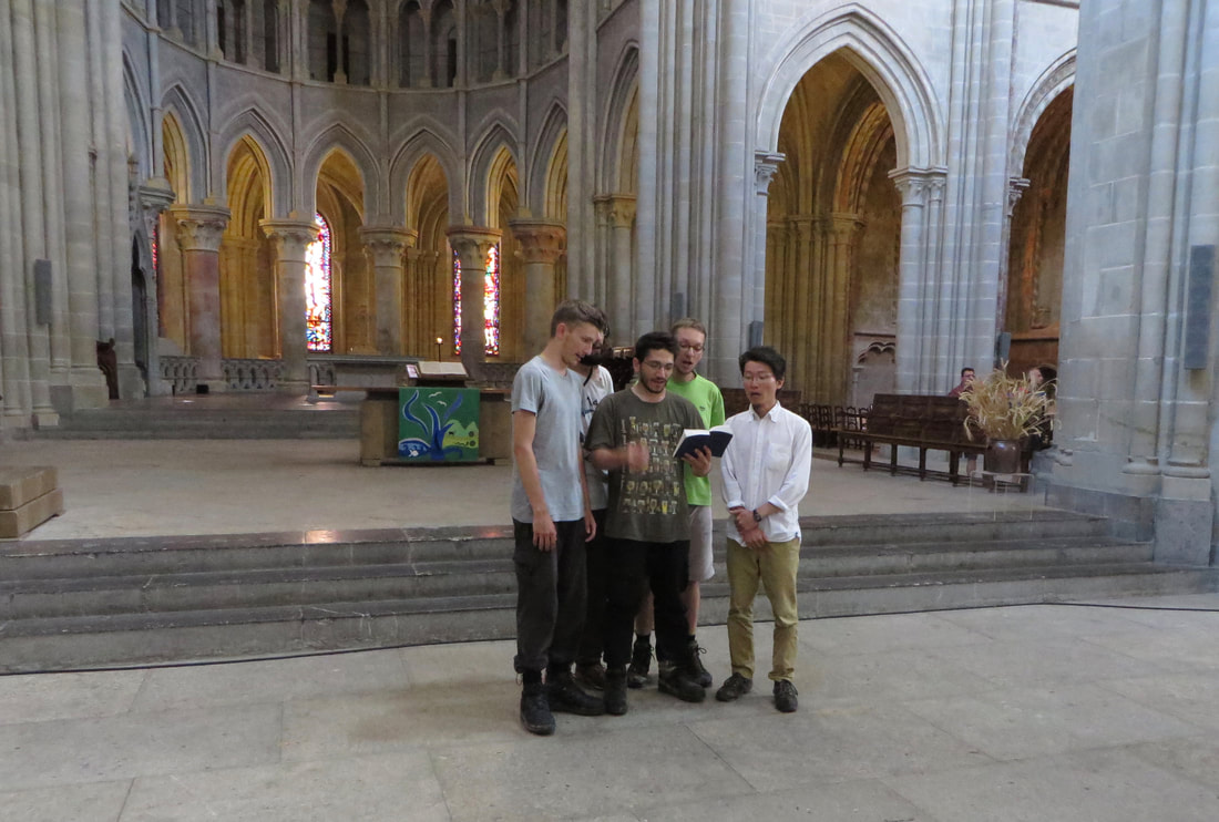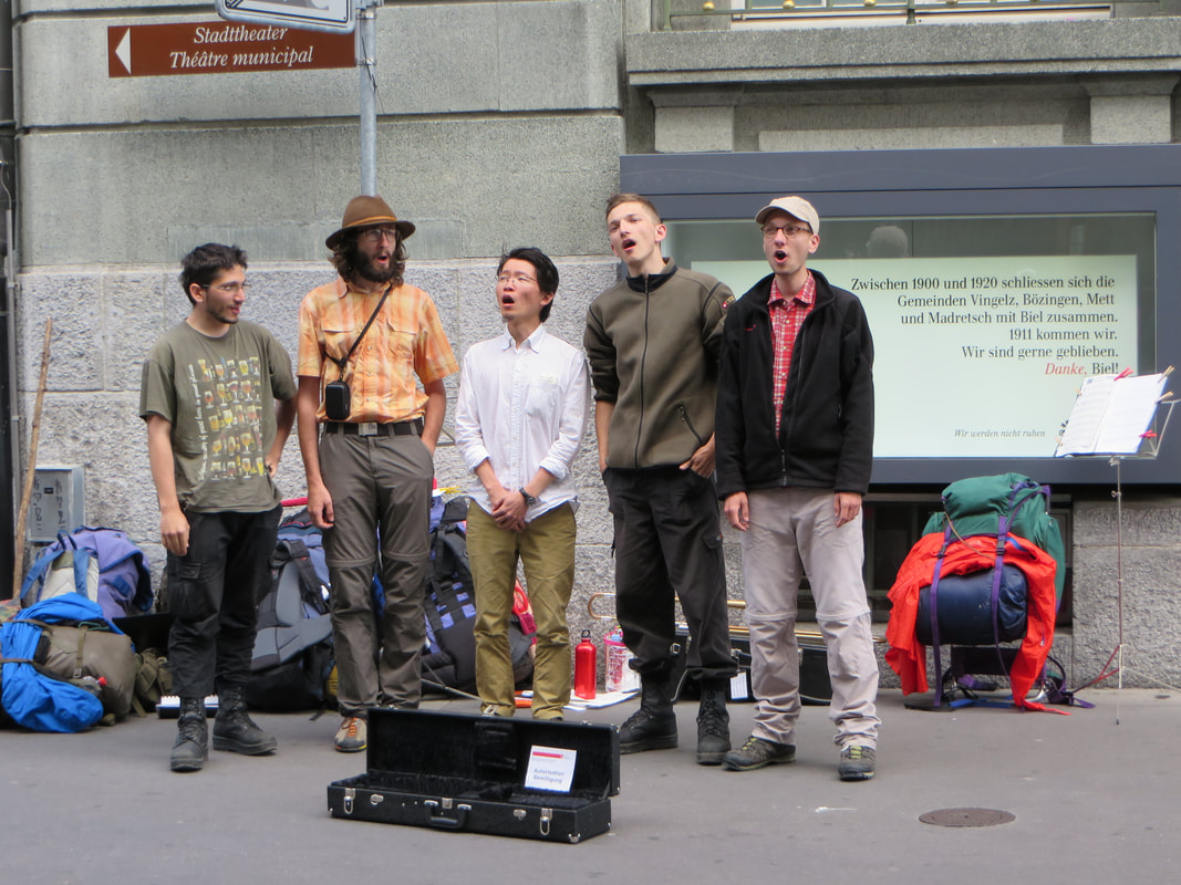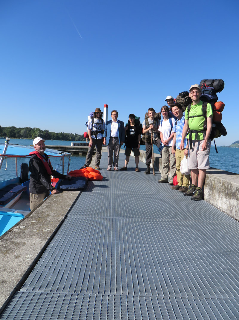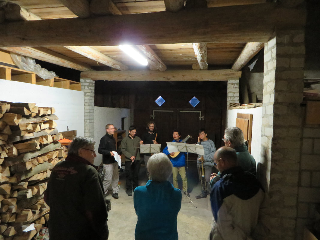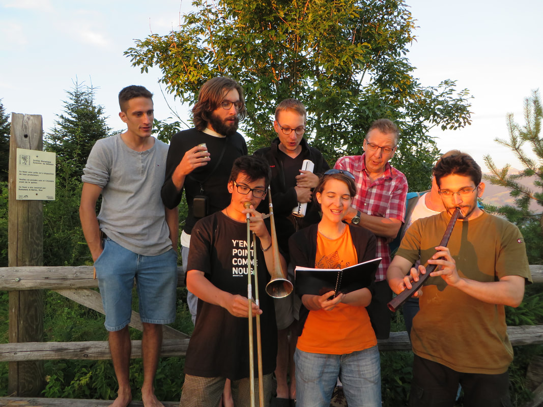 Partie de Bâle, la Capella remonte le cours la Birse, escalade le Mont Raimeux, traverse les Trois Lacs en bateau solaire, admire le coucher de soleil au sommet du Mont Gibloux, rouspète sous la pluie de la Broie et enchante le public lors de trois concerts. (Saint-Louis, Bulle et Lausanne) Le soir au coin du feu et pendant les pauses dans la journée, les marcheurs découvrent les joies du choeur d’homme. Terre jurassienne devient très rapidement leur chant favori.