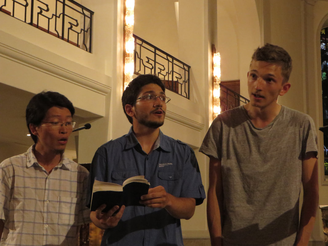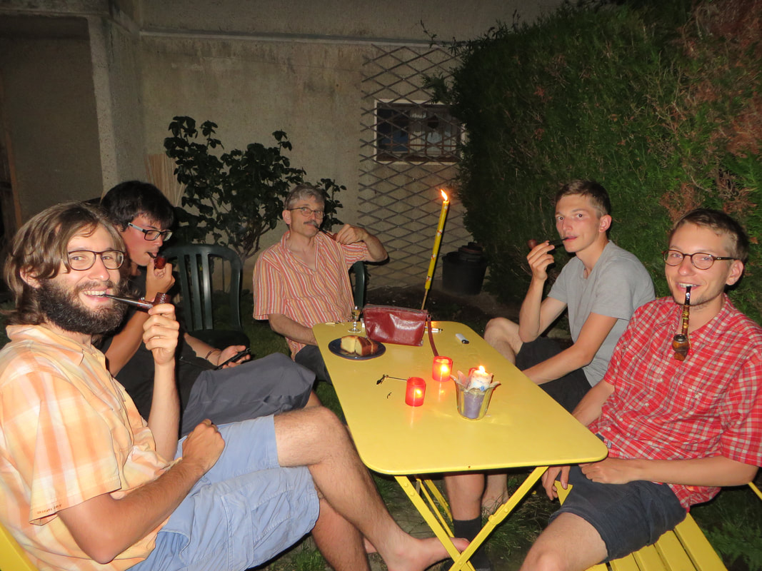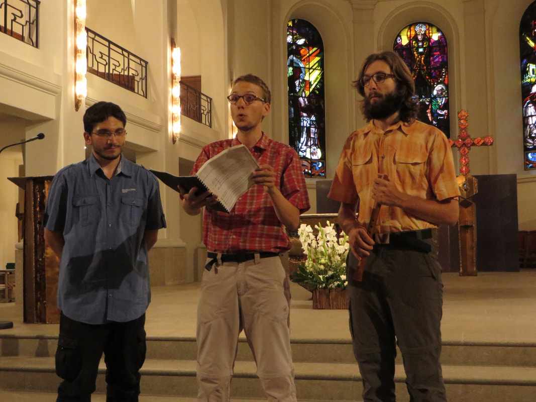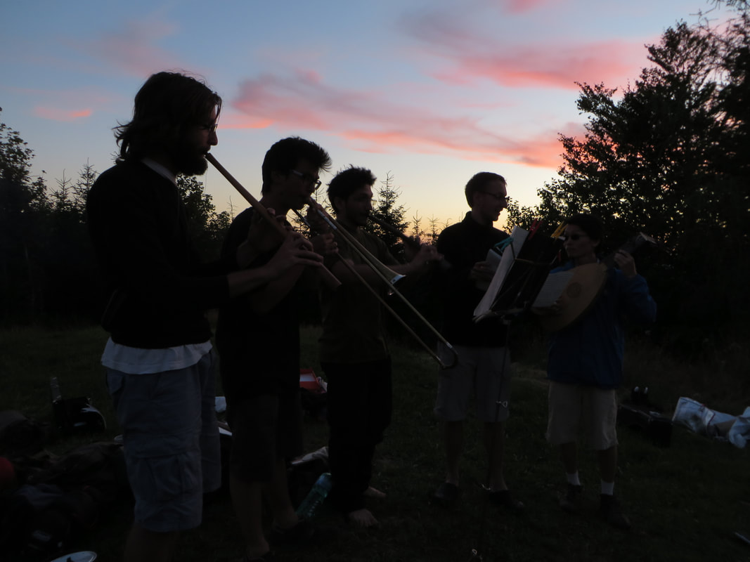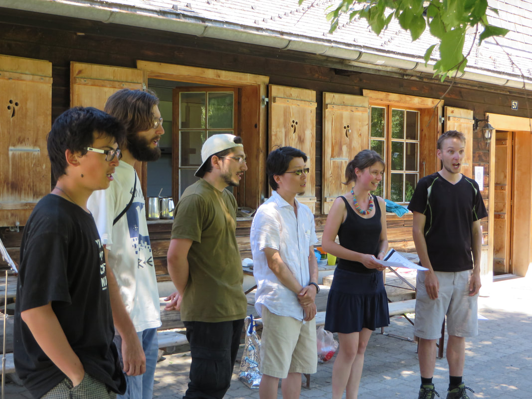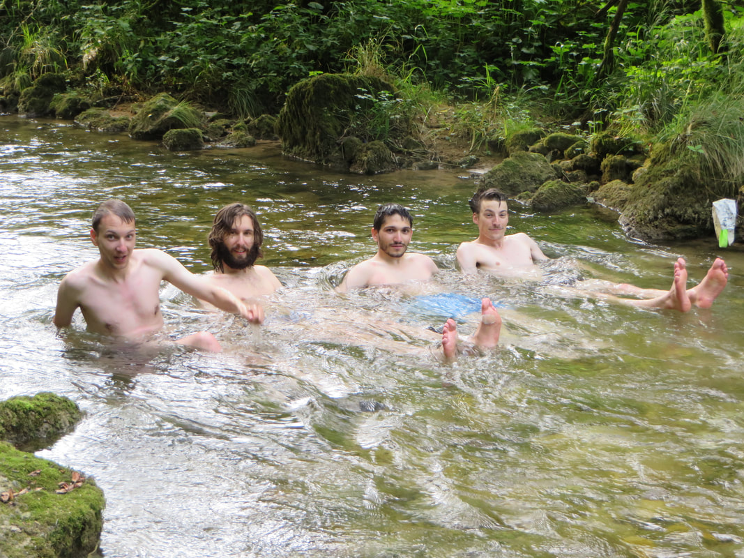 Partie de Bâle, la Capella remonte le cours la Birse, escalade le Mont Raimeux, traverse les Trois Lacs en bateau solaire, admire le coucher de soleil au sommet du Mont Gibloux, rouspète sous la pluie de la Broie et enchante le public lors de trois concerts. (Saint-Louis, Bulle et Lausanne) Le soir au coin du feu et pendant les pauses dans la journée, les marcheurs découvrent les joies du choeur d’homme. Terre jurassienne devient très rapidement leur chant favori.