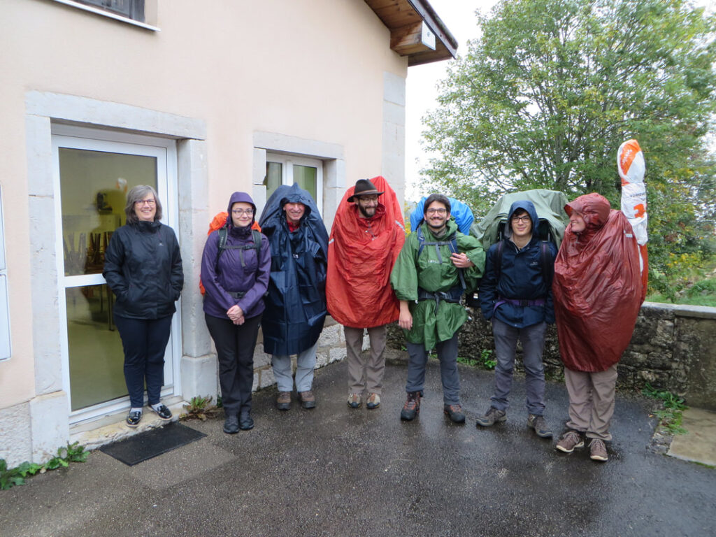 Voici l’heure du départ. Nous sortons nos capes de pluie que nous ne rangerons que trois jours plus tard, lors de notre arrivée à Nancray. Nous passons par des endroits splendides, comme le Cirque de Consolation. Juste après le pique-nique, une belle éclaircie nous permet d’admirer la beauté des falaises dominant le monastère.