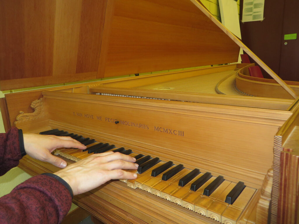 Adrien laisse courir ses mains expertes sur le clavier de son clavecin en nous réalisant un continuo de toute beauté. Morgan et Davide ont huilé leur coulisses et rivalisent de virtuosité avec Josquin et Marc qui ont quant à eux musclé leurs babines en prévision de la grande sonate numéro 2 de Rosenmüller. Bénédicte soutient tout le groupe de sa place centrale avec la doulciane.