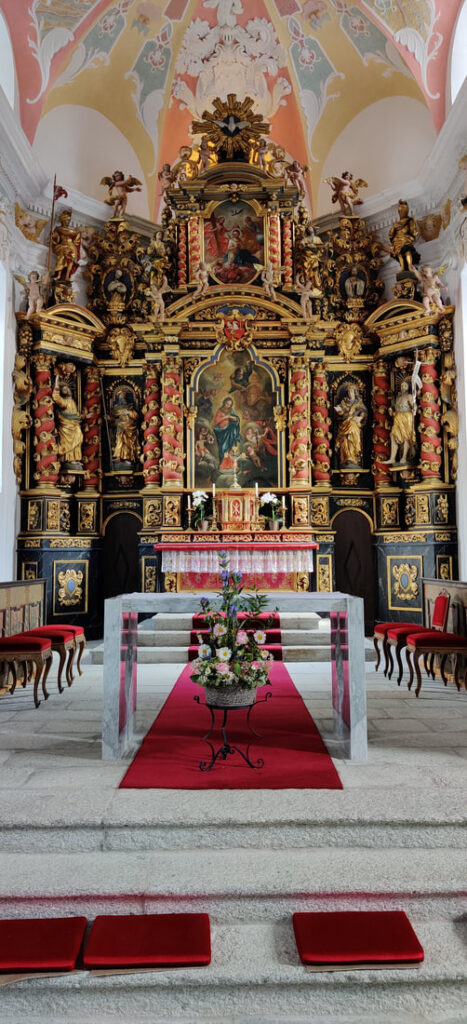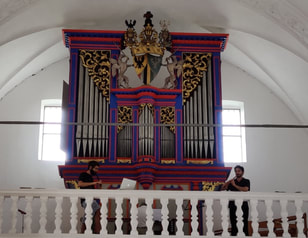 La musique de Palestrina, Viadana, Rosenmüller et Picchu résonne particulièrement bien dans ce décor baroque alpin. Les diminutions et autres ornements joués sur les cornets et trombones et à l’orgue Carlen font échos au fresques et autres décors de cette chapelle baroque.